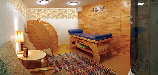 Особенность кабинета – кедровый интерьер: мини-сауна, массажная кушетка, облицовка стен, все выполнено из древесины сибирского кедра. Рекомендуемые размеры помещения: от 20 кв. м.